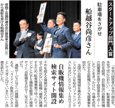 自販機をさがせ!】が2021年12月5日(日)にヤマダグリーンドーム前橋で行われた《群馬イノベーションアワード2021》にて出場したスタートアップ部門賞を受賞したことをご報告致します。引き続き、現状に甘んじる事無く日々イノベーション(革新)し続け【自販機】という視点から『社会問題解決』を達成し素敵な【まちづくり】を達成して参ります。